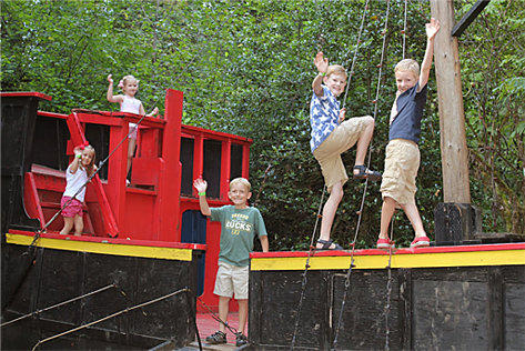 We have four covered pavilions for use, along with pedal boats, a private pool, train rides, miniature golf, 18 acres of lawn and hiking trails, a pirate ship, and our famous Pink Lemonade fountain along with many more amenities.